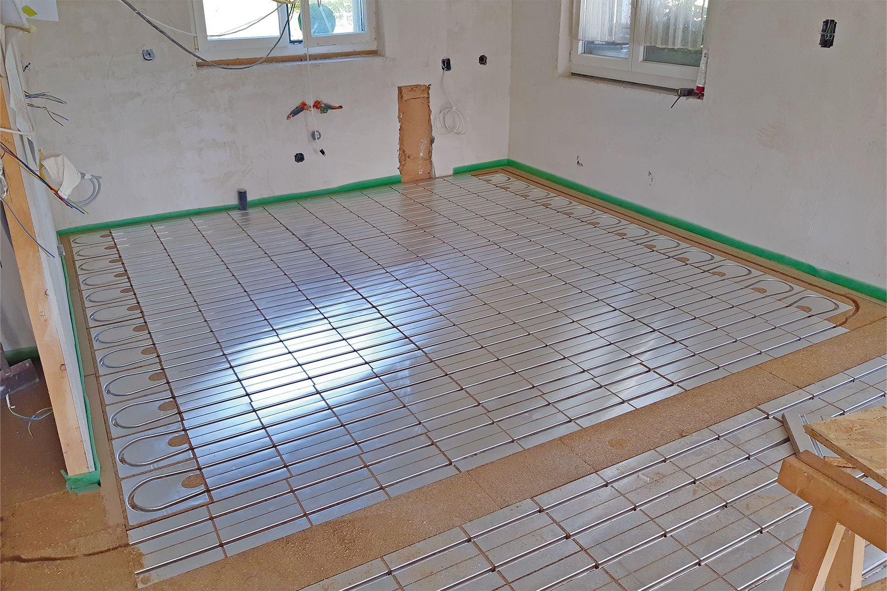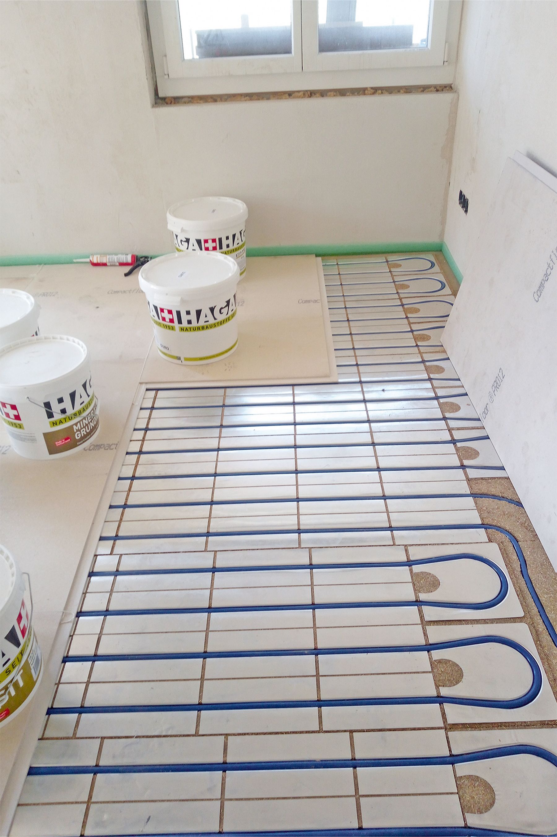 Unser Flächenheizsystem aus Strohfaser und unser Faserzementestrich CompactFloor PRO vereinten die Grundvoraussetzungen der Ökologie und der guten Heizleistungswerte.